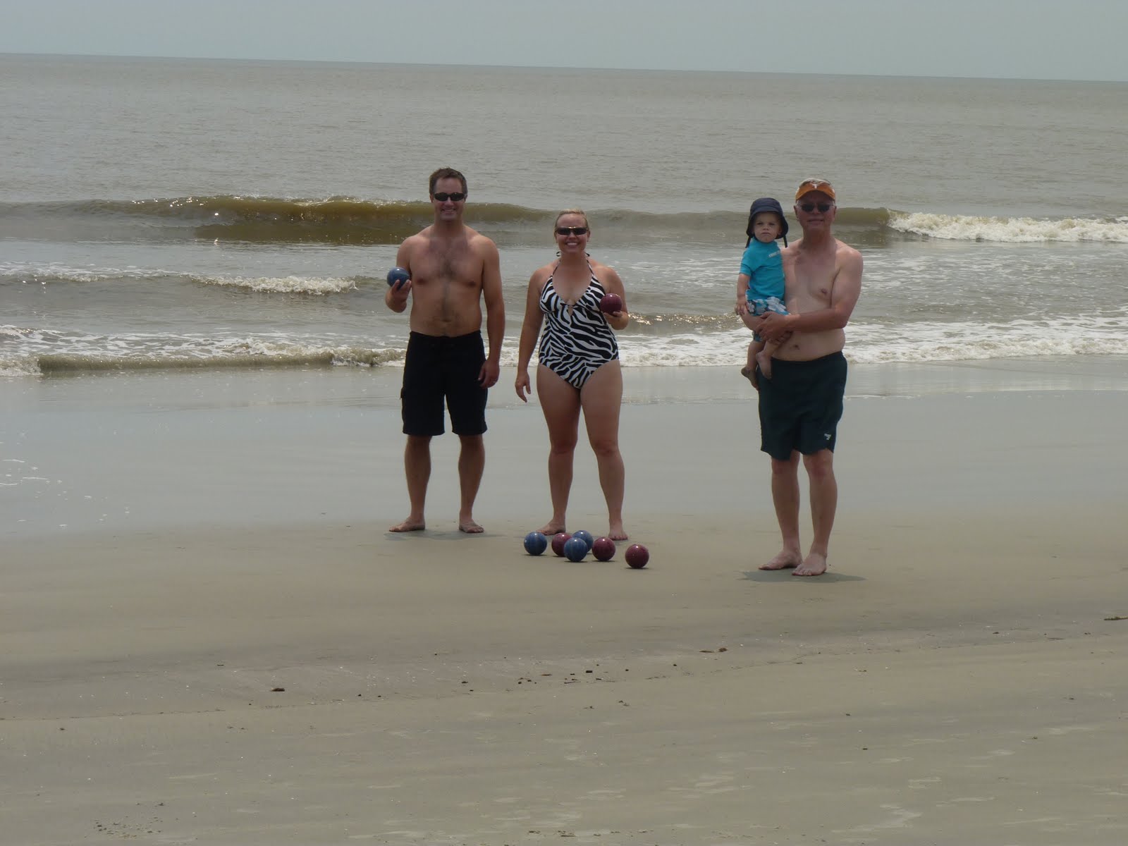 Bocce ball has a big hit on this trip! It was part of Daddy's father's day present with a fishing trip later in the week. Whether we were on the beach or in the backyard, the balls were rolling. It was a daily event for us, especially Daddy and Opa, who challenged each other regularly. Even Trenton tried to play, but we had to distract him because we were afraid the heavy ball would land on his foot when he'd attempt to toss it.