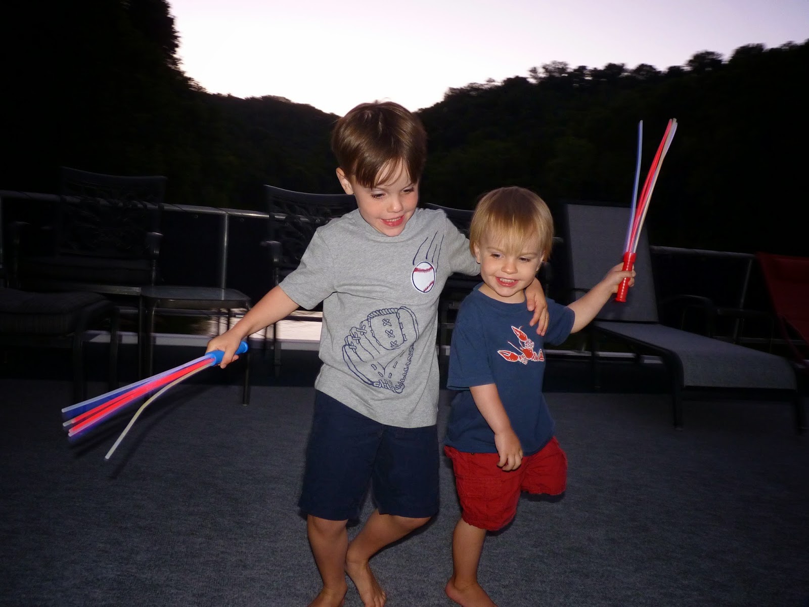 The boys love to get out GiGi's backgammon. They don't play it, just love, love, love the dice and chips.Cruising the evening to watch fireworks.