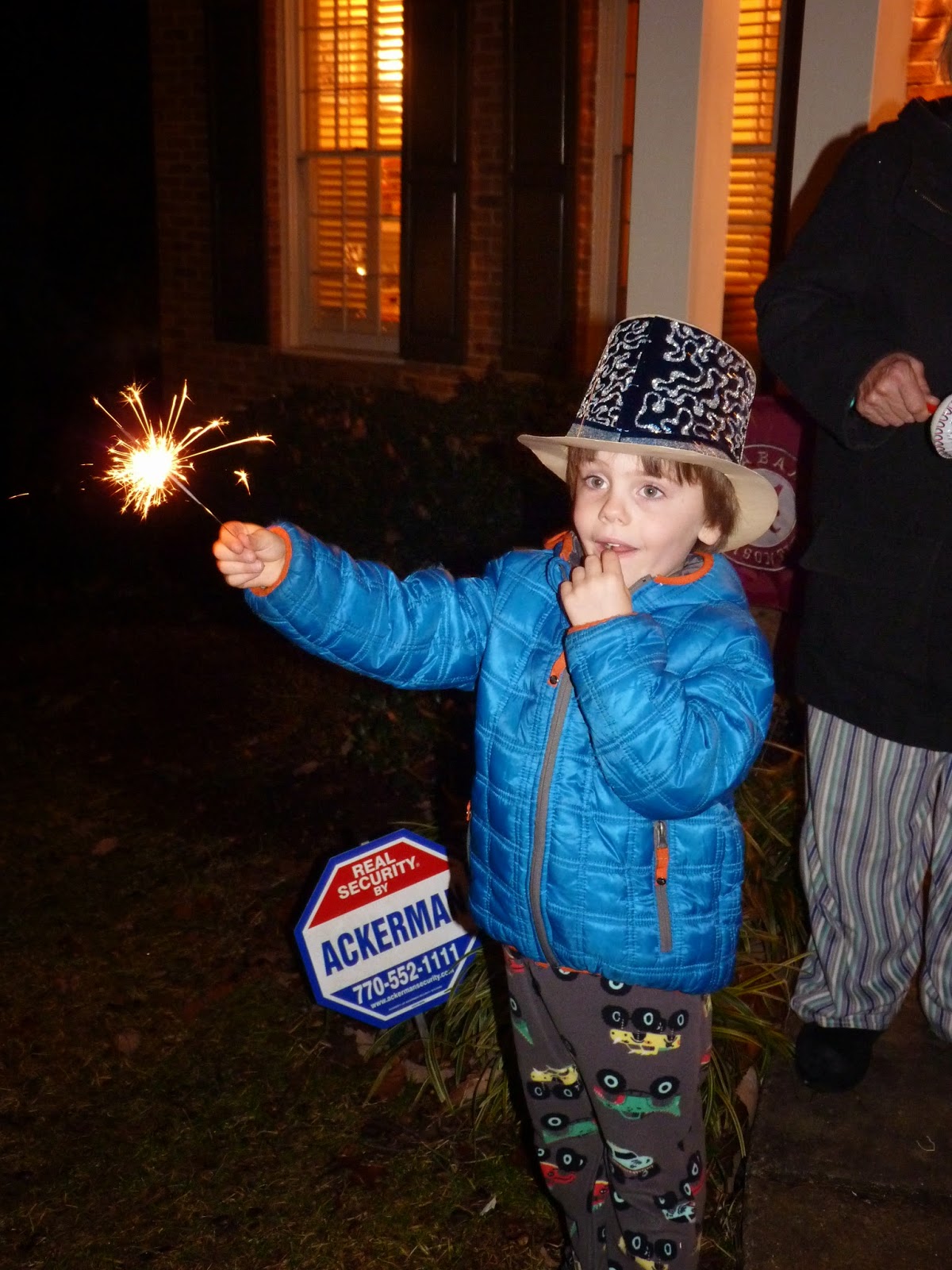 We had just returned from being out of town for a week, so we decided to have a low key New Year's Eve at our house. The boys and I bought balloons and each hour they got to pop one. This was a good plan, with intentions of the boys probably making it until 9 or 10, with fun activities with each pop. Well, being out of town for Christmas break and traveling time zones helped us because the boys somehow last until midnight! Around 11:30, Granna and I texted, and I told her they were still up but we didn't have our noise makers and party hats out. Who could let little kids welcome in the new year like that? She and Opa came right over, showing up just before midnight with goodies to pump the boys up for the new celebration. They probably didn't hit the sack until 1 am; however, they were also in the habits of sleeping in until 8/9. Woohoo!